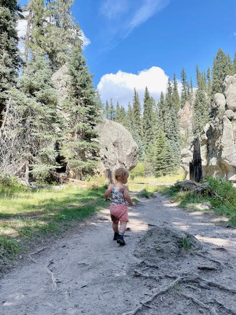 Activities Otherwise, as far as activities went, we did quite a bit of hiking in the Sandias, with and without dogs. The Embudito trail was a fan favorite, as well as the Embudo trail. It was basically hiking on a desert mountain, zero trees, just brush and dirt. But the views of Albuquerque were amazing. There was a trolley that we took to the top of the Sandia’s when Joey’s parents were visiting, and that was incredible. We hiked a loop where you could see century old petroglyphs, these were in quite a few places, but I favored this loop as it was easy to do with Olivia. We also found a loop called Contemplation Trail, and super interesting trees grew in this park. I actually went back with my mom when she came into town because it was so cool! We also joined a gym with childcare, which took some load off of me during the week, and gave Olivia a chance to play with kids. We took a few trips to Santa Fe (loved), Madrid, and Jemez Springs for some hiking. Actually, driving back from Jemez took us through Los Alamos, probably one of the most famous nuclear plants in America. We had to stop at what looked like a toll booth where they checked our IDs, and asked us a few questions about confidentiality before we were allowed to continue on the road. It was a little creepy!